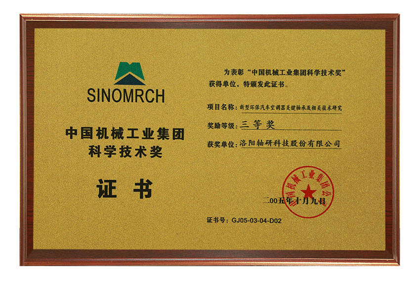 中國(guó)機(jī)械工業(yè)集團(tuán)科學(xué)技術(shù)獎(jiǎng)三等獎(jiǎng)